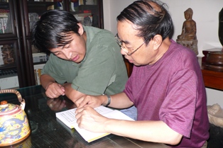 梁向阳老师(左一)与当代著名文学家贾平凹进行创作交流 |