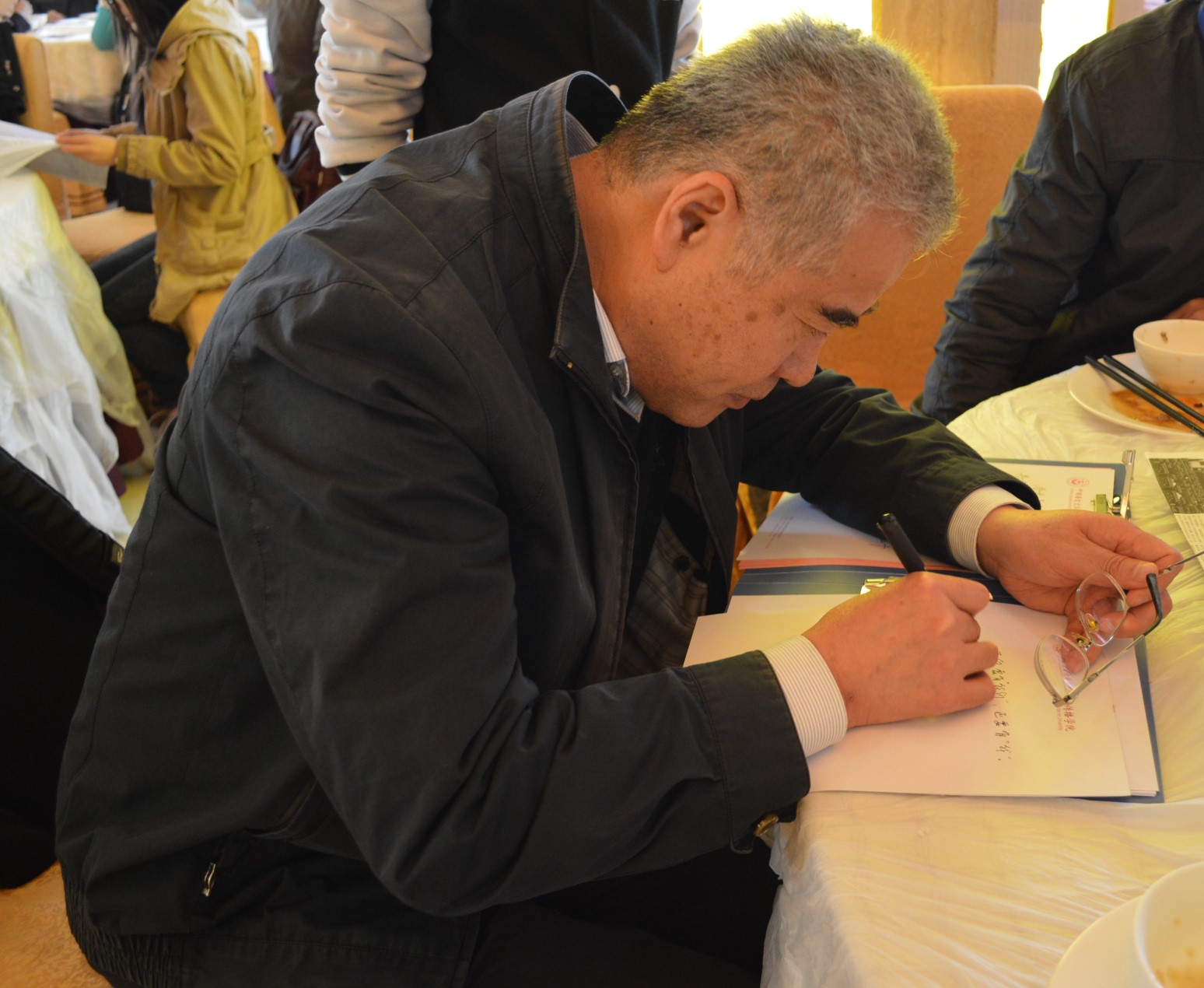 中国人民大学3308维多利亚优惠大厅院长孙郁教授题词现场 |
