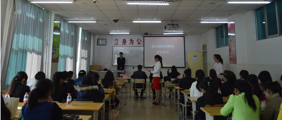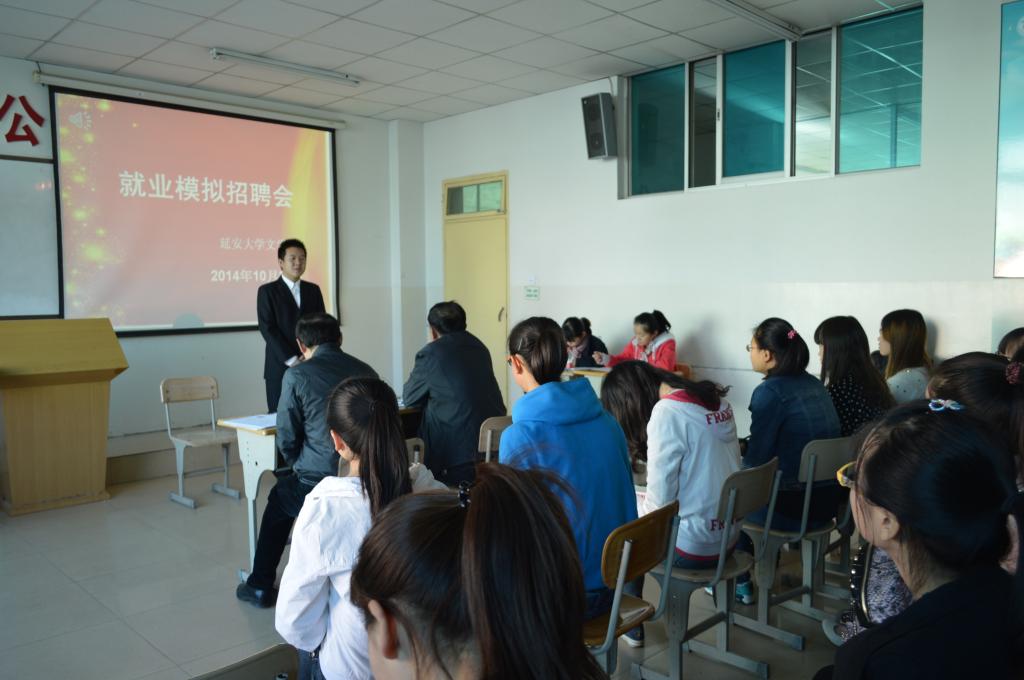 本网讯 为了让学生熟悉招聘环节,提高面试素质,10月26日上午,学院在周扬楼三楼举办了就业模拟招聘会。模拟招聘对象为11级、12级同学,招聘岗位包括大学生村官、政府宣传部文员、特岗教师和城镇社区工作人员。模拟面试官由学校就业指导中心牛保明老师,院党委副书记李伟和陈忠红、李萍老师担任。