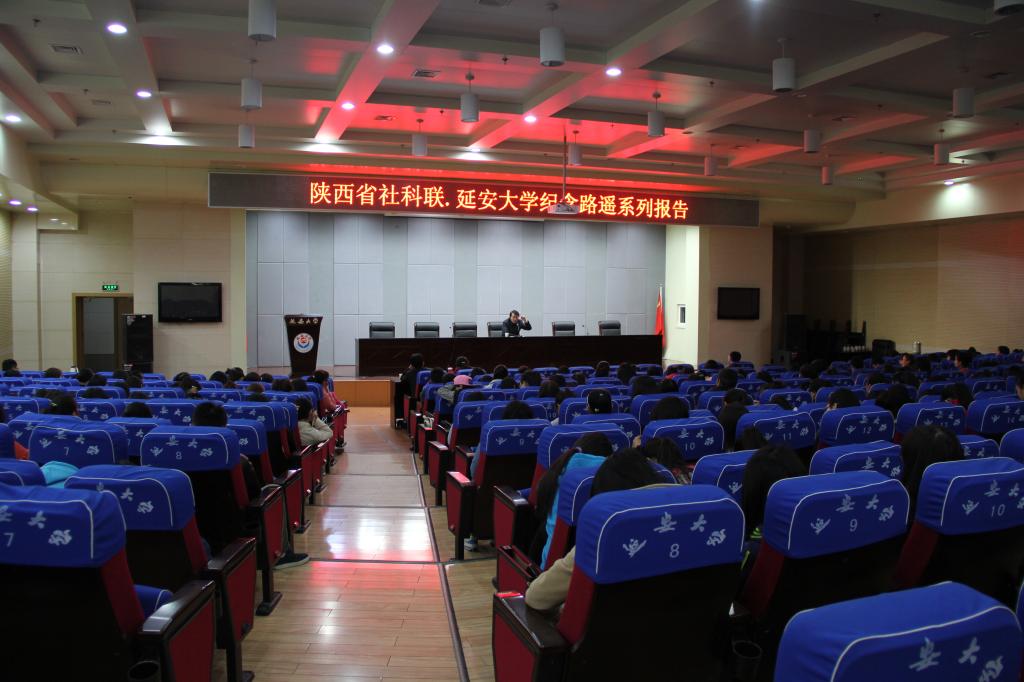 本次活动由陕西社科界与延安大学共同主办,由我校科研处、文学与新闻传播学院、路遥文学馆、校团委和学生处共同承办。本场报告会是“科技改变生活,创新引领未来”延安宣传咨询暨纪念路遥系列活动的一部分。这个系列活动分为文汇山祭拜路遥墓、广场主题宣传、系列学术报告会和“缅怀路遥”全校师生征文等四个活动进行。
