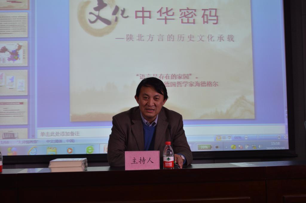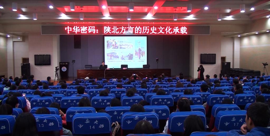 报告会中,王局长结合自己的研究,从“方言——中华文明的基因密码”、“方言——折射语言流变轨迹的棱镜”、“方言——语言文化的奇葩”和“方言——文化认同的亲和剂”四个部分展开,以大量的词语、句子、古诗词为例,向大家详细介绍了陕北方言的历史文化传承脉络。