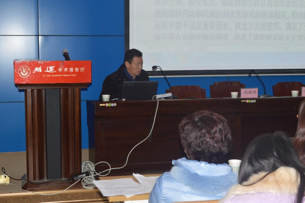 白振有副教授报告题为《延安时期秧歌剧对陕北方言资源的运用》。他谈到,秧歌剧是汲取民族民间文学形式而生成的一朵奇葩,是延安文学重要的题材样式,引经据典,从“延安时期秧歌剧对陕北方言资源的运用、延安时期秧歌剧运用陕北方言资源的功用”两大角度分析了秧歌剧与陕北方言的关系。他指出,陕北方言有力地促进秧歌剧及延安文学语言的通俗化与大众化,为从事相关专业的研究生提供了新的研究思路。