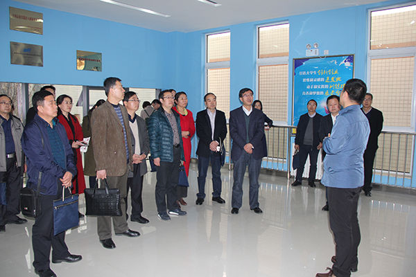 图为王俊虎副院长等考察西安邮电大学大学生创新创业训练基地