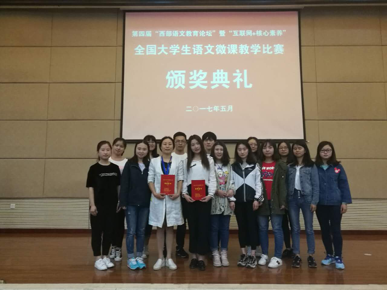 (本网讯)2017年5月6—8日 “第四届西部语文教育论坛:互联网+核心素养暨全国大学生语文微课教学风采展示活动”在陕西师范大学长安校区举行,此次比赛是由中国高等教育学会语文教育专业委员会主办、陕西师范大学承办的一项全国性重要赛事,旨在提升互联网时代高等院校的教师教育水平,促进“核心素养”理论与语文学科教学的融合。来自北京师范大学等全国40所高等院校的40名选手参加了微课教学展示活动。