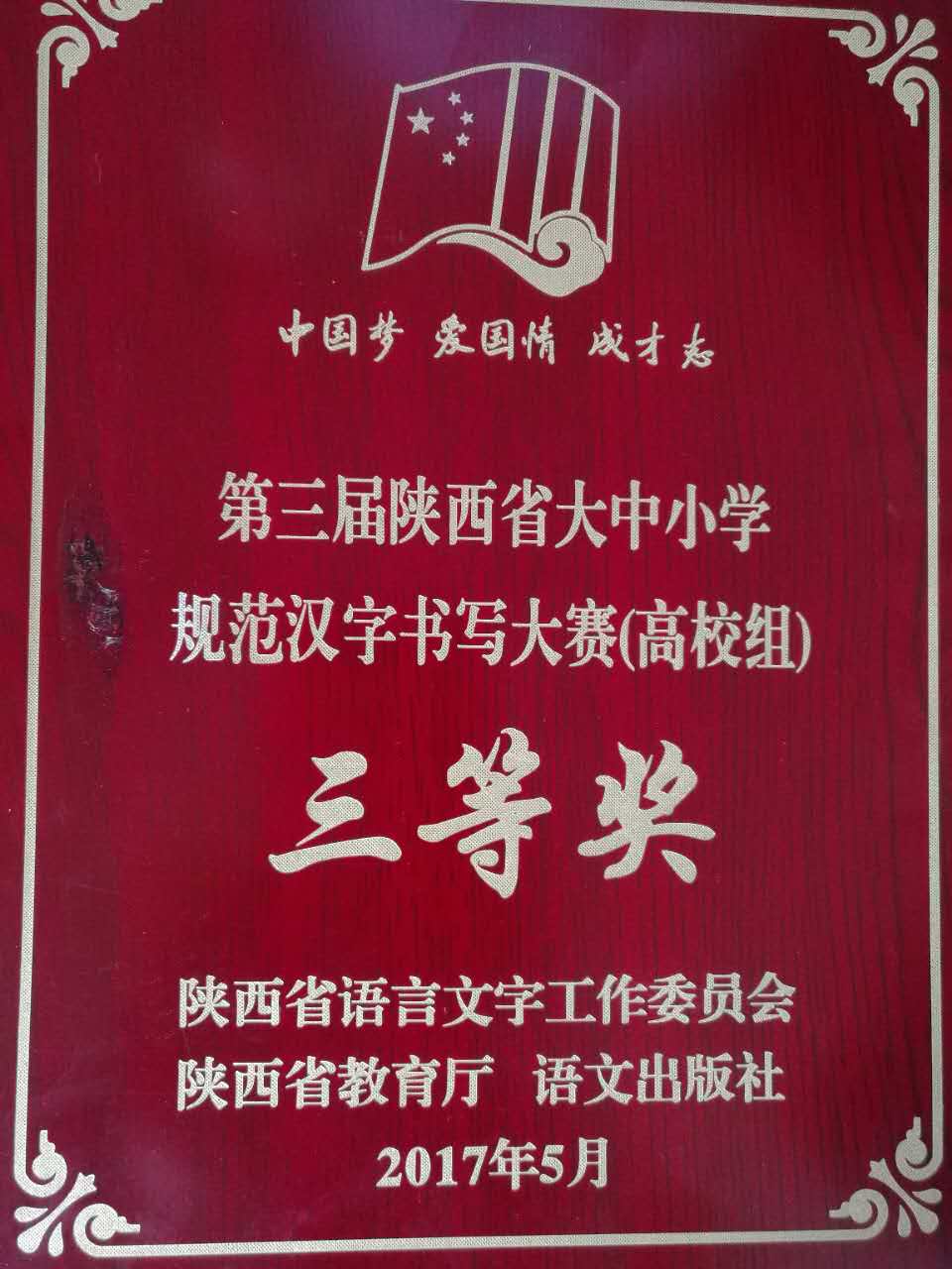 我院四位选手毫不懈怠,始终为学校荣誉而战。经过激烈角逐,最终我校代表队荣获团体三等奖,白振有老师获得优秀指导教师奖,学校获得陕西省大中专学校汉字书写大赛优秀组织单位奖。