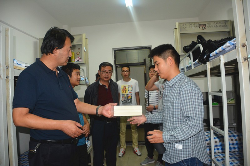 9月13日晚,我院院长梁向阳、党委书记马延龙、党委副书记李伟、团委书记祁迪、辅导员温鹏升前往17级学生宿舍看望新生,并向他们带去了著名校友路遥先生的著作《平凡的世界》。