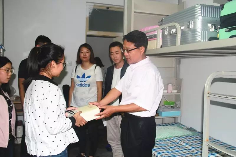 老师们对宿舍是否存在安全隐患和学生日常都十分关心,并告诉新生在大学里要好好学习,同时也要积极参加各种活动,丰富四年的大学生活,不可贪图安逸而荒废了学业,多要锻炼身体,有了“资本”,才能做更多有意义的事。最重要的是,将我院73级学长路遥先生所著的《平凡的世界》赠给每个宿舍,希望他们可以认真阅读,学习孙少安、孙少平等人的奋斗精神,对生活、对学习、对未来的人生之路起到一定的作用。