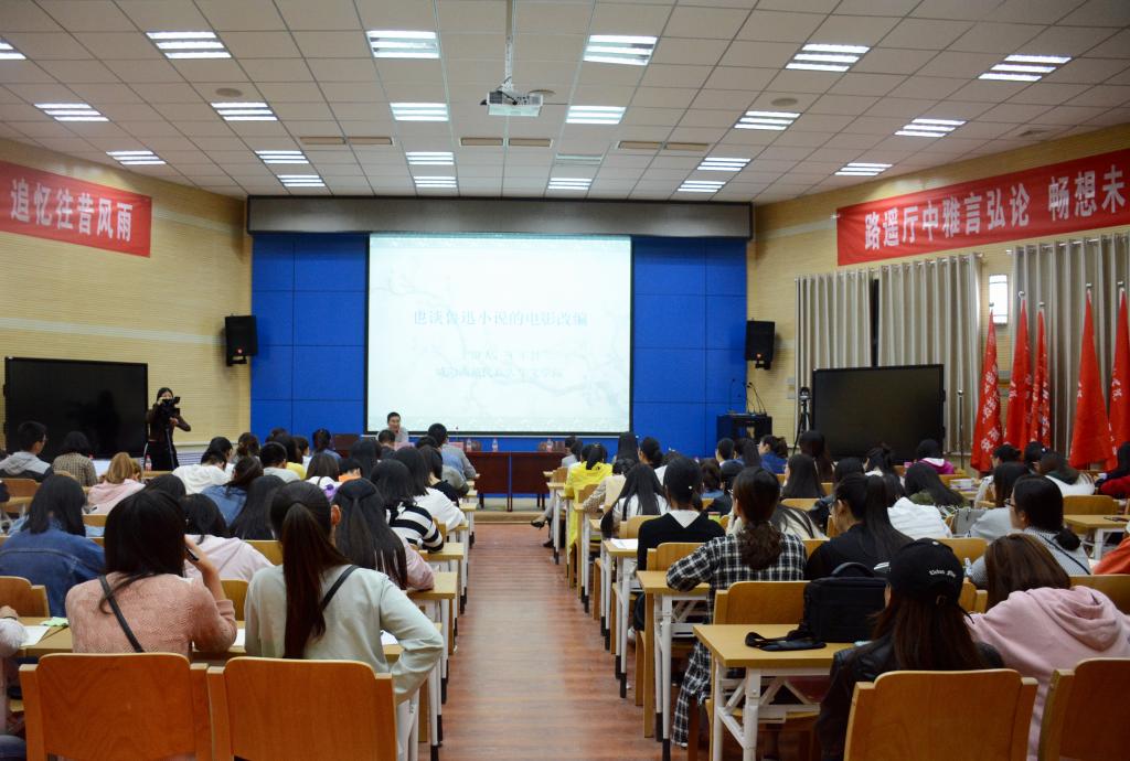 报告会上,王军君教授就“鲁迅与电影”这一主题从鲁迅谈电影、鲁迅小说改编电影的主要特点、小说改编电影的理论问题三个方面进行了报告。报告会伊始,王军君教授结合自己的学习及工作经历讲述了大学时光对自己的影响,用言语表达了他对母校的感恩之情。随后,他以鲁迅对电影的话语“电影是我的唯一娱乐”为始,叙述了鲁迅关于电影言谈的方式。其次以鲁迅笔下的改编为电影的《祝福》、《阿Q正传》等为例讲述了鲁迅小说改编电影后对故事情节和人物性格调整的主要特点。最后用改编实践的“忠实说”“创造说”阐述了小说改编的理论问题。报告会结束前,王军君教授与在场学生展开了互动,并热情地回答了学生所提问的问题。