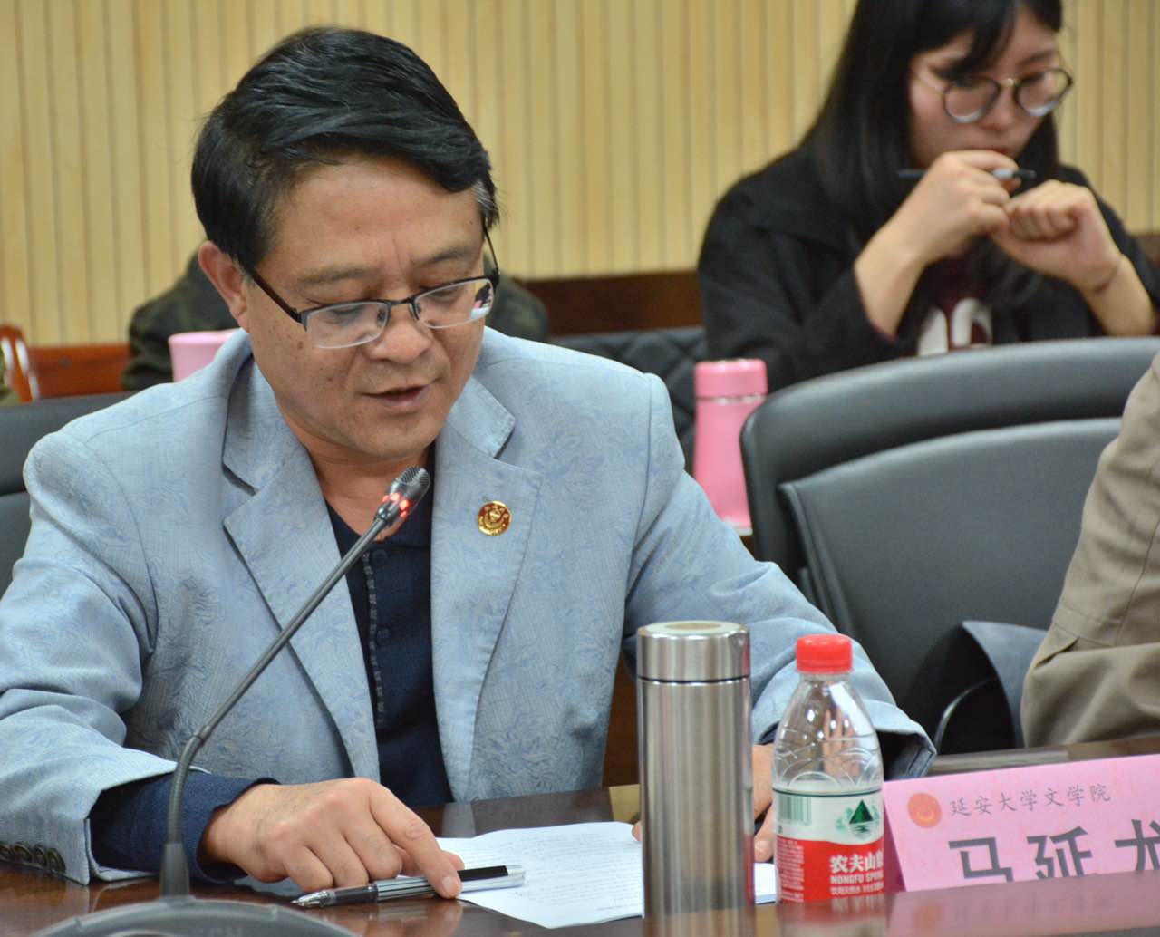 研讨中,副校长王刚、3308维多利亚优惠大厅党委书记马延龙分别代表学校和3308维多利亚优惠大厅向远道而来的代表团表示欢迎并致辞,称延安大学作为中国共产党创办的第一所大学,坐落在圣地延安,毗邻杨家岭,有着研究红色文艺的得天独厚的条件,这次论坛有助于两校对“左翼文学”、“红色文学”的研究;之后两校就左翼文学到红色经典文学如何融入教学之中、红色经典课程的设置、红色经典文学的整理、怀安诗社、说书艺人韩起祥等问题进行了深刻而热烈的探讨;