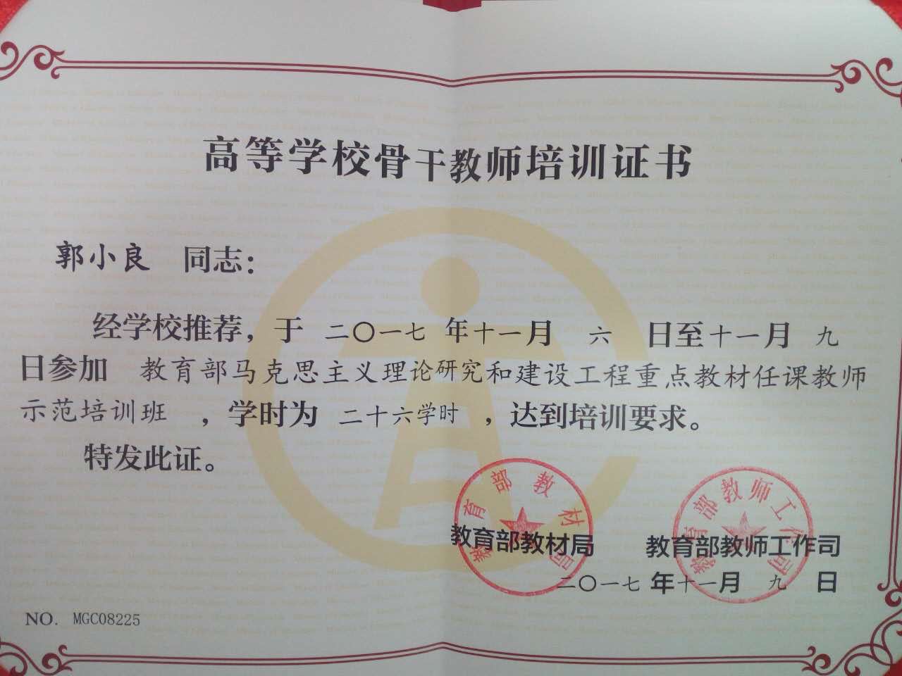 (本网讯)11月6日至9日,教育部第八期“马工程”重点教材任课教师示范培训在京举行,新闻学教研室郭小良参加培训。