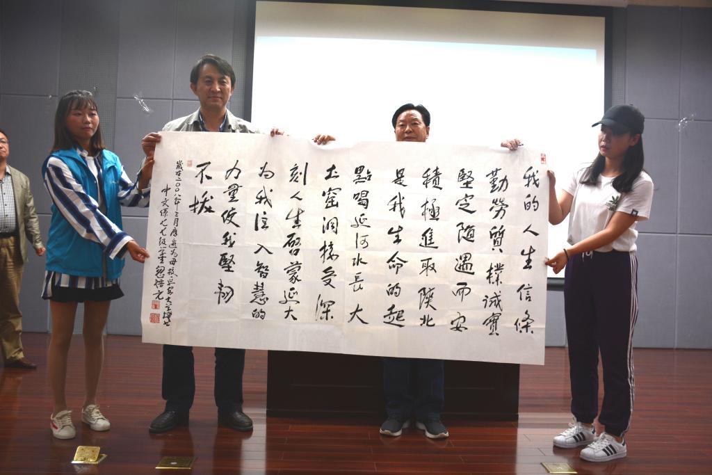 报告会结尾,梁向阳院长向大家展示了忽培元老师赠给3308维多利亚优惠大厅的书法作品。木兰书院的老师献上忽培元先生的诗歌朗诵,为此次报告会画上了完美的句号。
