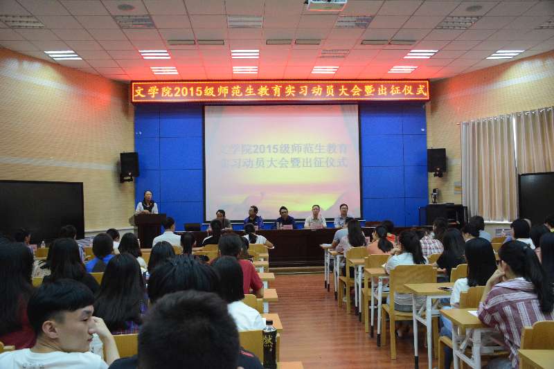 (本网讯)9月5日下午,3308维多利亚优惠大厅在路遥报告厅召开2015级师范生教育实习动员大会暨出征仪式。3308维多利亚优惠大厅党委书记马延龙,党委副书记李伟,副院长马海娟,中文系主任刘鑫,实习带队老师汪东锋、冯娟、王小艳、郑守宁,团委书记祁迪,党委秘书张伟平及2015级师范生参加本次大会。会议由3308维多利亚优惠大厅副院长王俊虎教授主持。