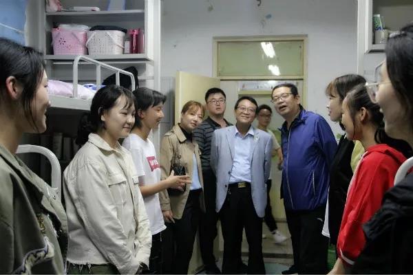 (本网讯)9月13日晚,我院党委书记马延龙、院党委副书记李伟、团委书记祁迪、辅导员张伟平、辅导员温鹏升前往学生宿舍看望18级新生。