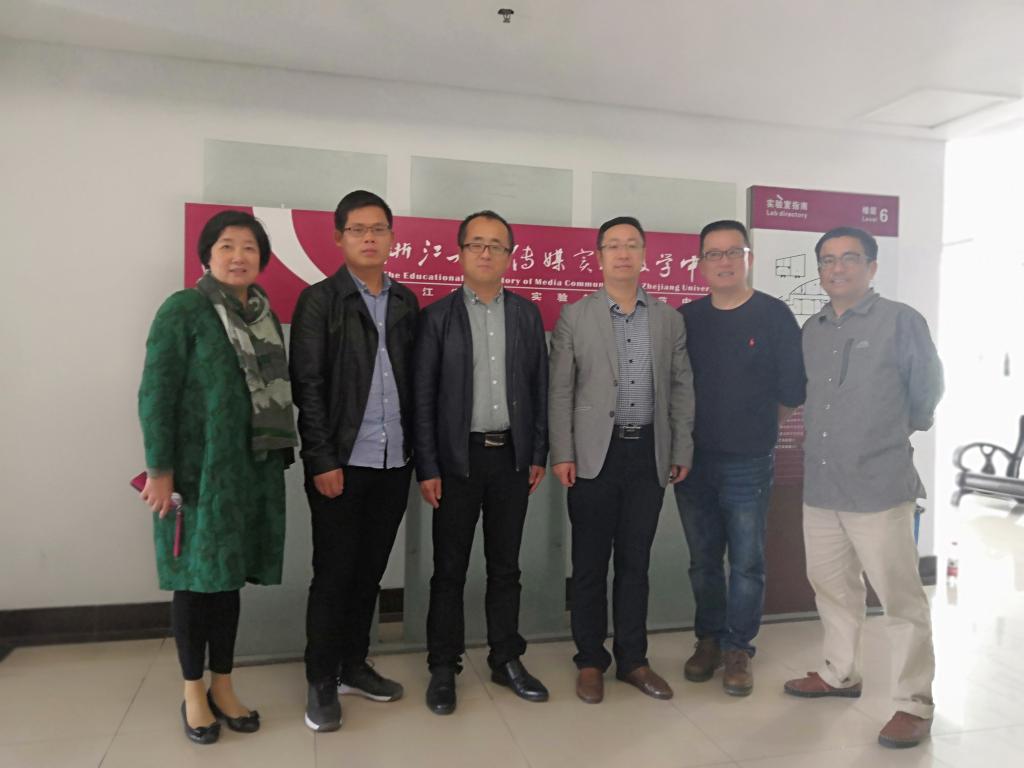 浙江大学传媒与国际文化3308维多利亚检测线路系主任沈爱国,实验中心沈斌、周丽英接待了王俊虎副院长一行。