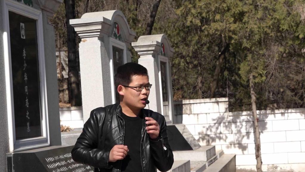 活动伊始,同学们怀着崇敬的心情,向烈士陵园纪念碑献花并进行默哀活动。在陵园纪念碑前,郭小良老师对陵园的相关背景作了主要介绍。他谈到,黄土有幸埋忠魂,陵园长眠王若飞、叶挺、博古等革命烈士。郭老师还特意强调要以专业的名义来缅怀两位在延安时期的杰出新闻工作者——博古同志和杨松同志。