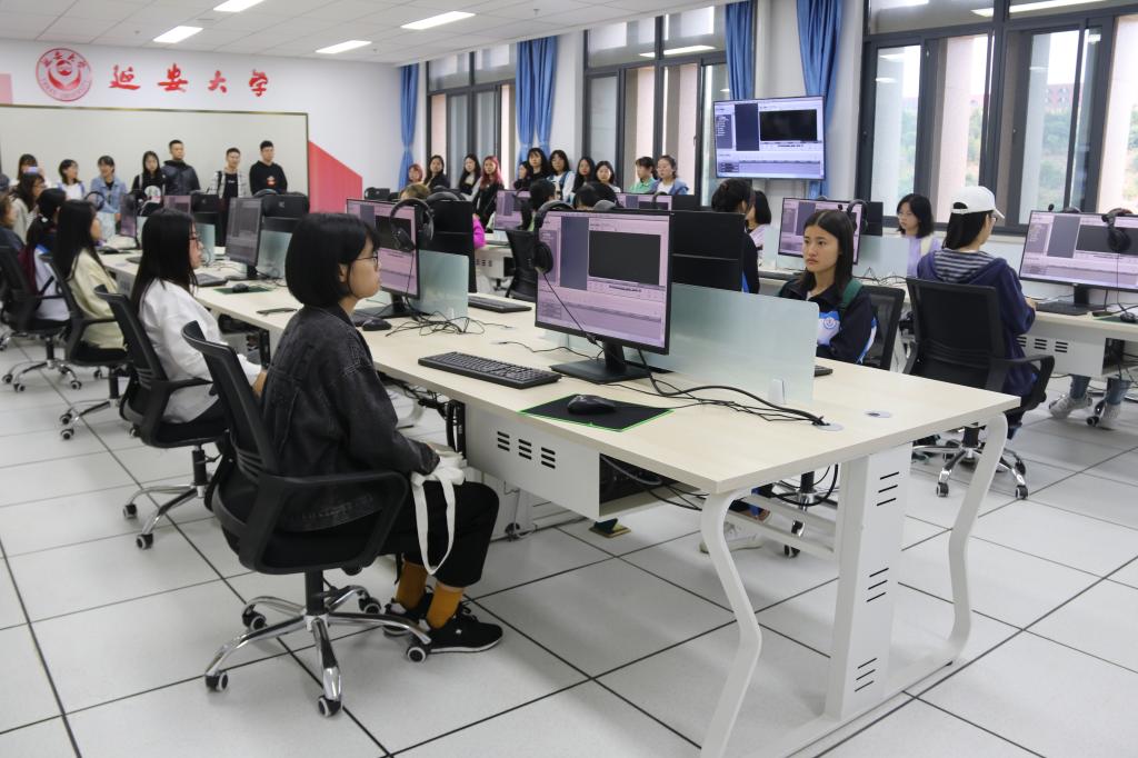 延安大学融媒体实验教学中心开设了全媒体虚拟演播厅、版面编辑实验室、播音实验室、办公室自动化实训室等实验室,为新闻系师生提供了专业化、全方位的实践平台。