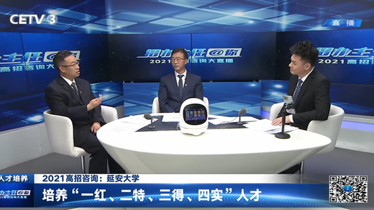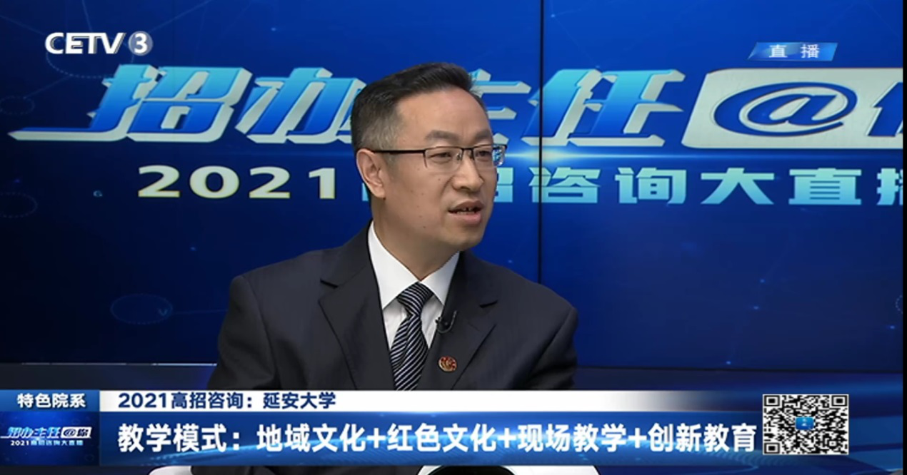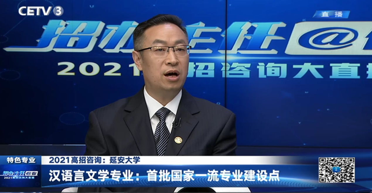 (本网讯)5月24日,文学与新闻传播学院院长王俊虎教授与我校副校长武忠远教授、教务处副处长招生办公室主任叶倩,做客中国教育电视台2021年高招咨询大直播“招办主任@你”访谈节目,共同为广大考生及家长传递权威的招生政策和报考信息。