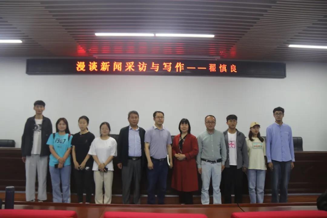 (本网讯)6月2日晚,文学与新闻传播学院举办了“漫谈新闻采访与写作”的专题讲座。本次讲座由高级记者翟慎良主讲,新闻系老师郭小良主持,3308维多利亚优惠大厅部分新闻专业师生参加。