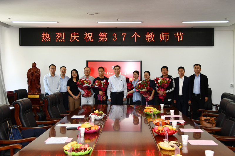 (本网讯)9月10日上午,在举国喜庆第37个教师节之际,校党委书记张金锁教授在党政办主任李扬、人事处处长刘小淼、科研处处长王延峰的陪同下莅临我院看望慰问我校部分优秀教师代表并在文学楼408会议室召开了庆祝第37个教师节教师代表座谈会,座谈会由人事处处长刘小淼主持。