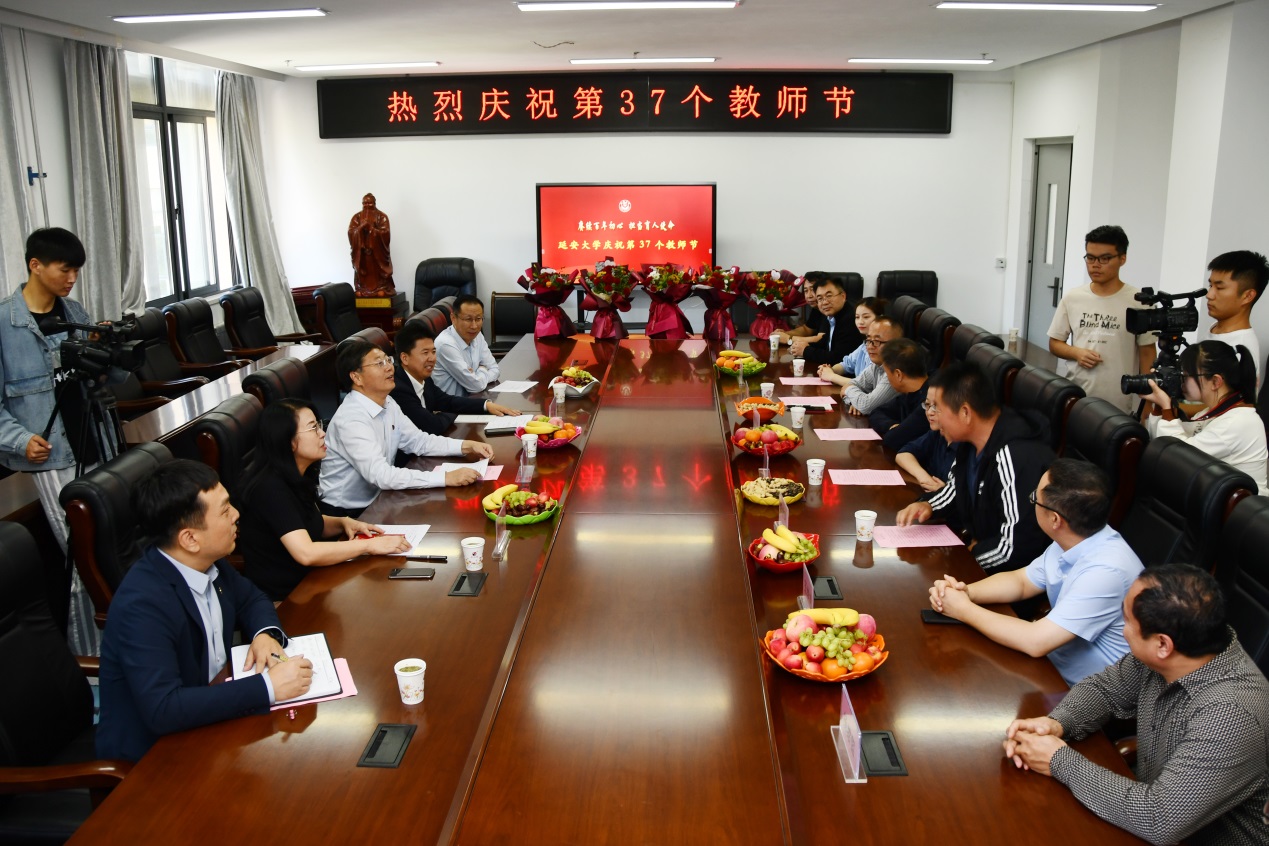 张金锁书记在听取大家的发言后指出,尊师重教是延安大学的优良传统。多年来,延安大学涌现出了一大批扎根老区、爱岗敬业的模范教师,为学校的事业发展做出了突出贡献,学校要全面落实教师为本的理念,着力提升广大教师的获得感、幸福感、荣誉感。希望广大教师扎根老区不忘立德树人初心,牢记为党育人、为国育才使命,积极探索新时代教育教学方法,以更加饱满的热情、更加昂扬的干劲,做好德高为师、学高为范的榜样引领,为学校各项事业的发展做出自己应有的贡献。