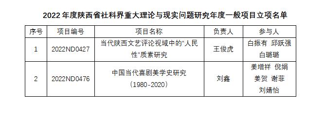 (本网讯)近日,陕西省社会科学界联合会公布了2022年度陕西省哲学社会科学重大理论与现实问题研究项目立项结果。经专家评审并报省社科联党组同意,共立项367项,资助项目365项,自筹经费项目2项,其中我院2项课题获批资助立项,每项资助经费5000元。