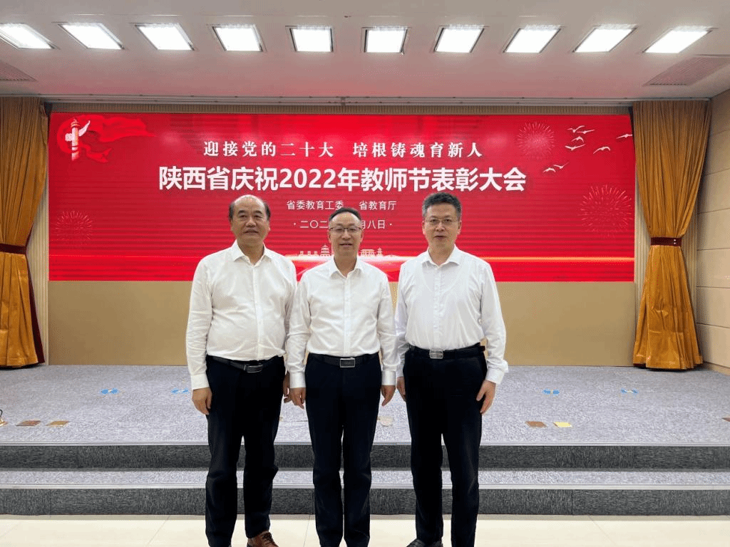 (本网讯)2022年9月8日下午,在第38个教师节来临之际,陕西省委教育工委、省教育厅庆祝2022年教师节表彰大会在西安召开,副省长方光华出席大会并讲话。来自全省大中小学的65名优秀教师代表参加表彰会。省政府副秘书长张军林出席,省委教育工委书记王建利主持会议。省委教育工委副书记、省教育厅厅长刘建林,省人社厅党组成员、副厅长张虎成,省总工会党组副书记、常务副主席王军,省委教育工委委员、省教育厅副厅长王海波出席。我院王俊虎教授作为陕西省“高层次人才特殊支持计划”(教学名师)领军人才代表应邀参加表彰大会。